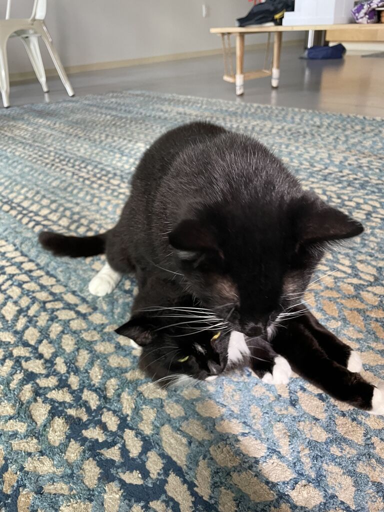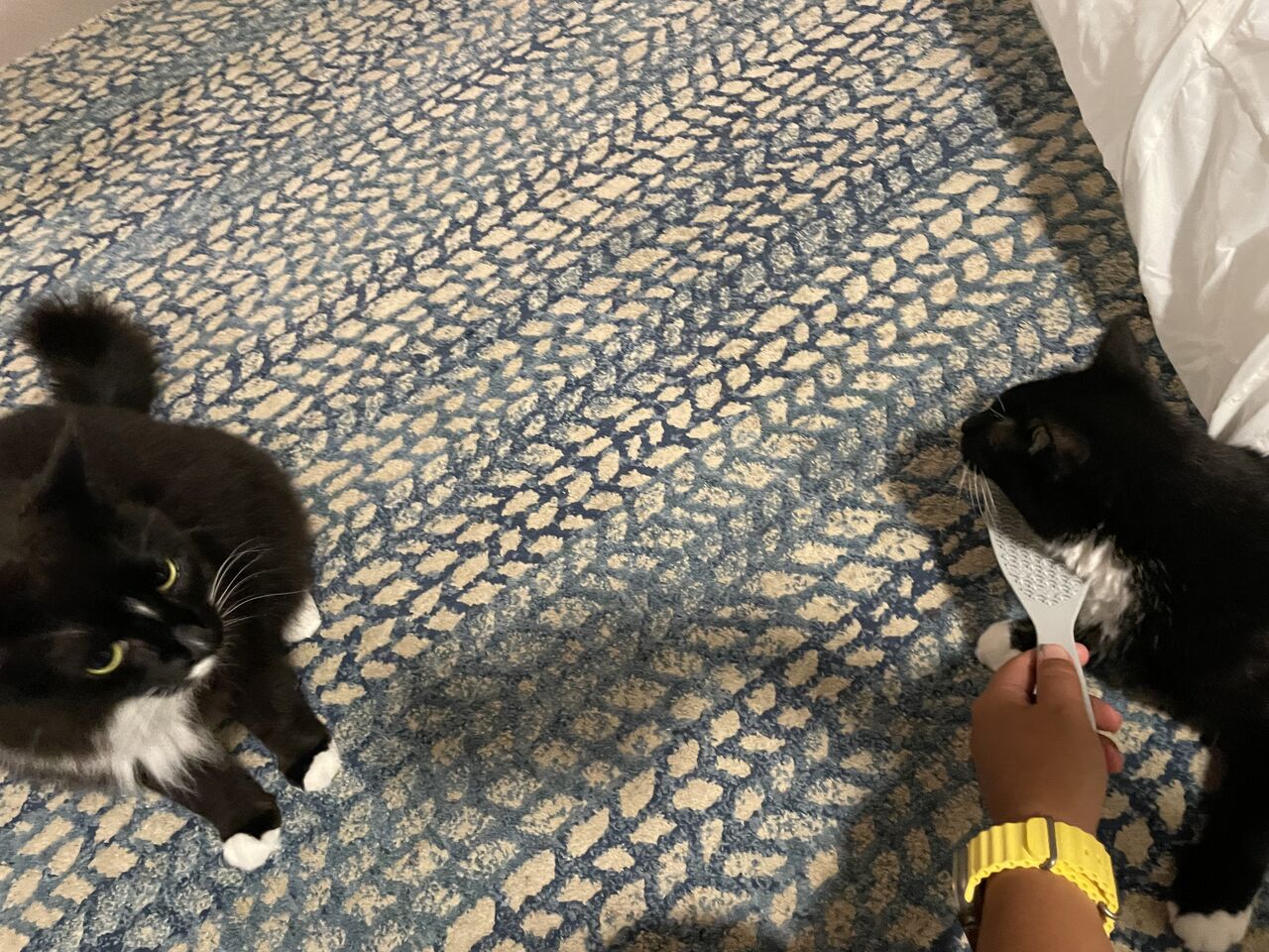 私と夫が海外に行っていなかった時、二匹で仲良くしてたのかな〜