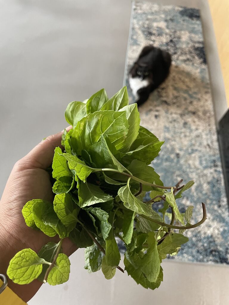ミントとバジルを収穫しました。
