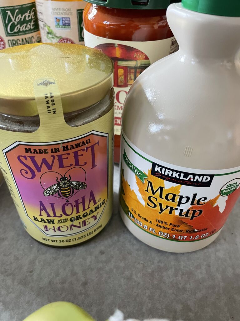 メープルシロップと、ハワイの生はちみつ。