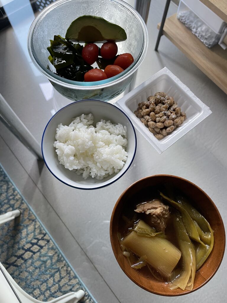 納豆、白米、ハワイのローカル豚肉とリークを煮たやつ。
