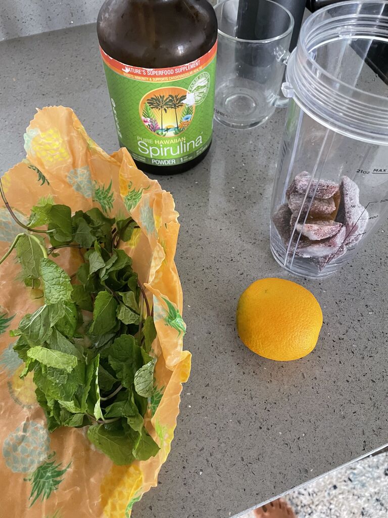 アサイー、ミント、オレンジ、スピルリナ。