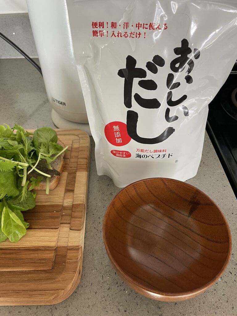「おいしいだし」ととろろ昆布、タヒチのお塩でお吸い物。