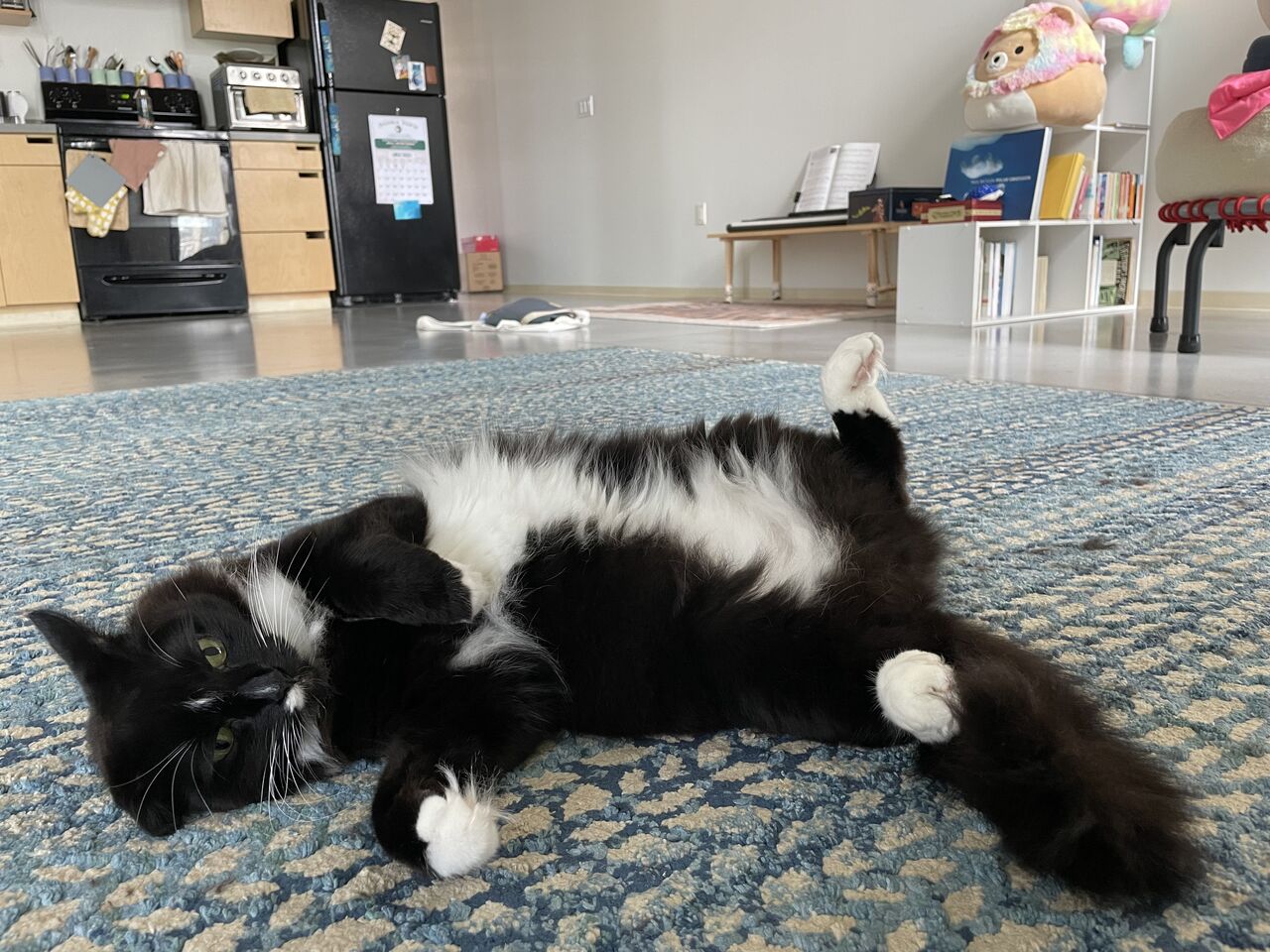 ポチ様の横に寝転び、お腹にたま様を載せる至福よ…。