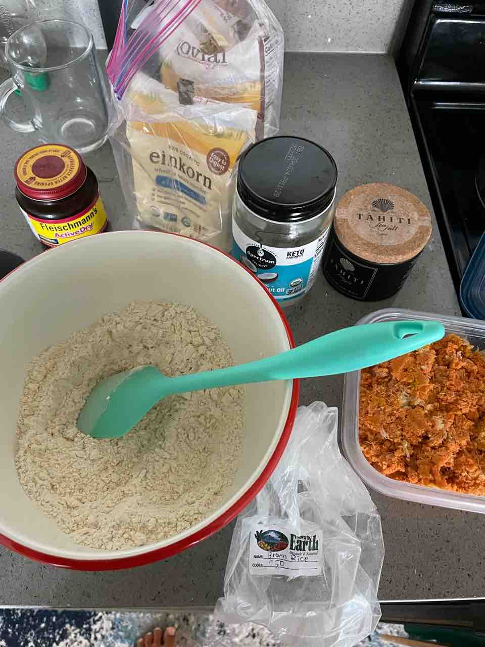 今回は玄米粉と、アインコーン(ヒトツブコムギ)で。