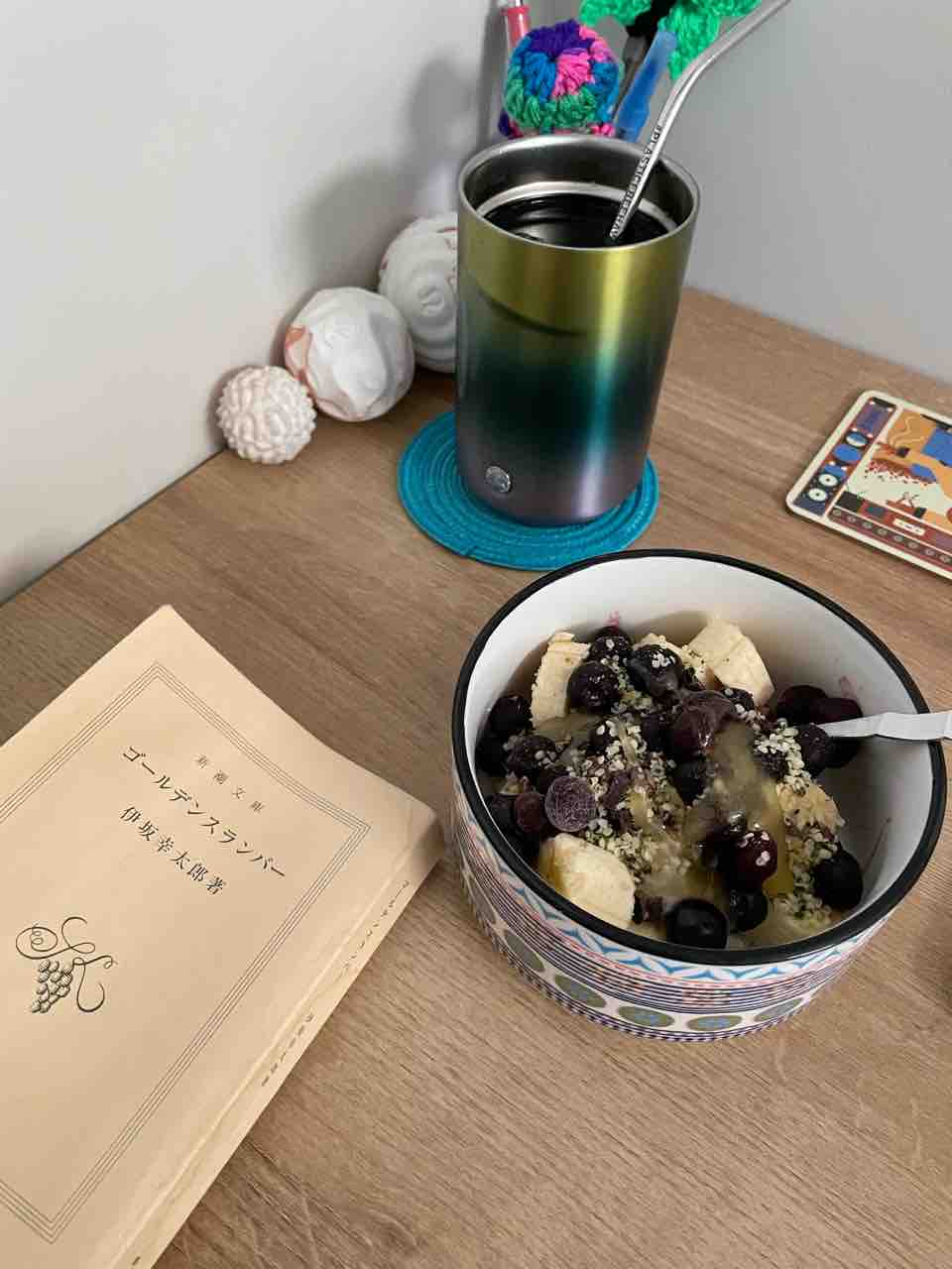 バナナ、ブルーベリー、カカオニブ、ヘンプシード、生蜂蜜!