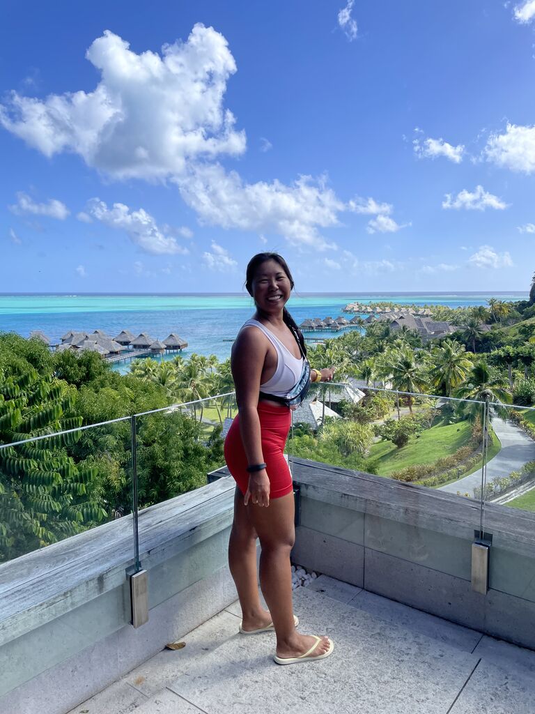 ボラボラでヨガ前の私。