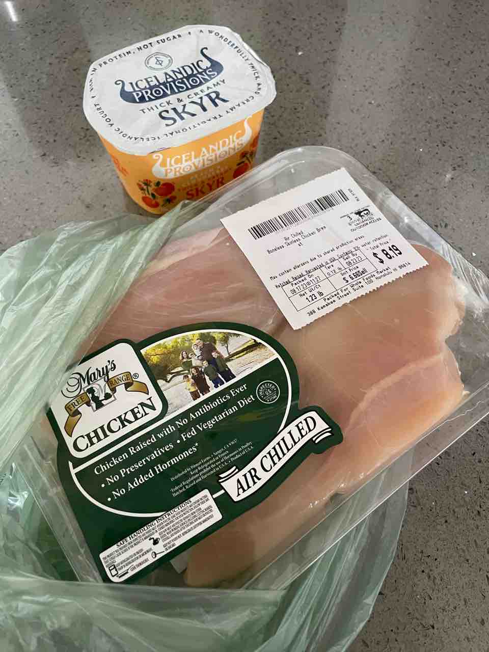 ホールフーズでまたスキール買ってセールになってた鶏胸肉も購入。