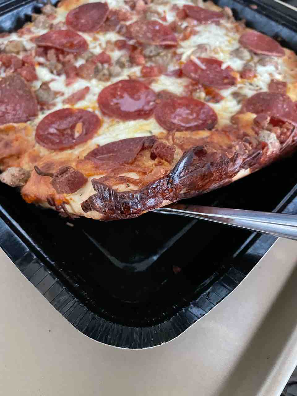 このピザ、夫の大好物なのだ。端っこがカリッとする。