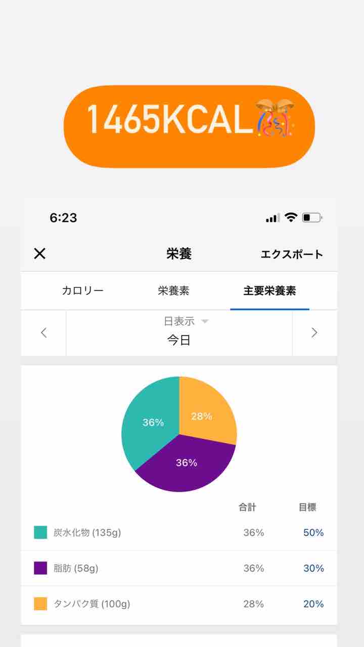 カロリーは1465キロカロリーぐらいでした!