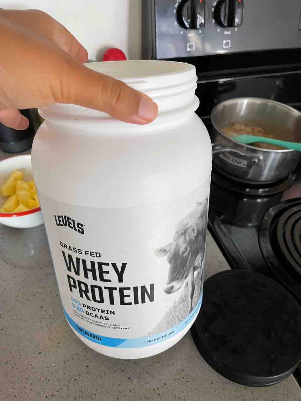 朝ごはんは、オートミールにスイカの白いところ入れてカサまししてプロテイン。