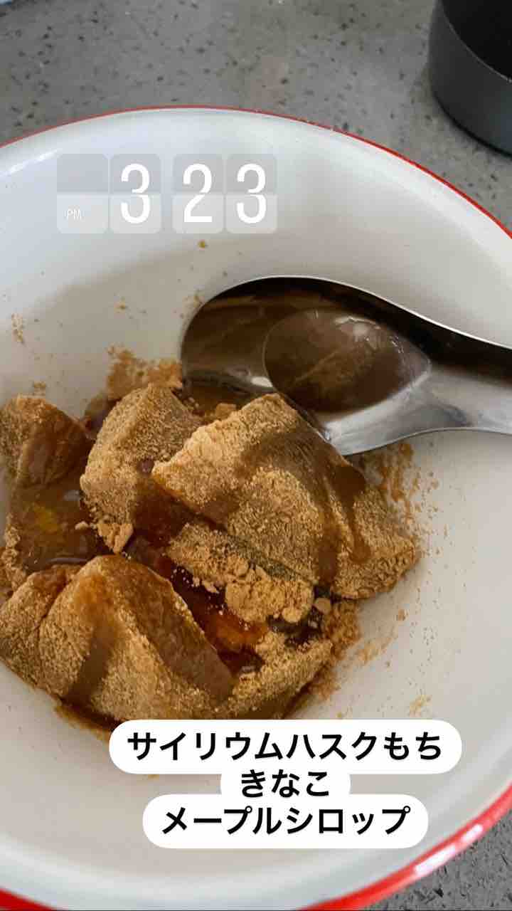 それからサイリウムハスク餅ときなこ大さじ1、メープル小さじ1。