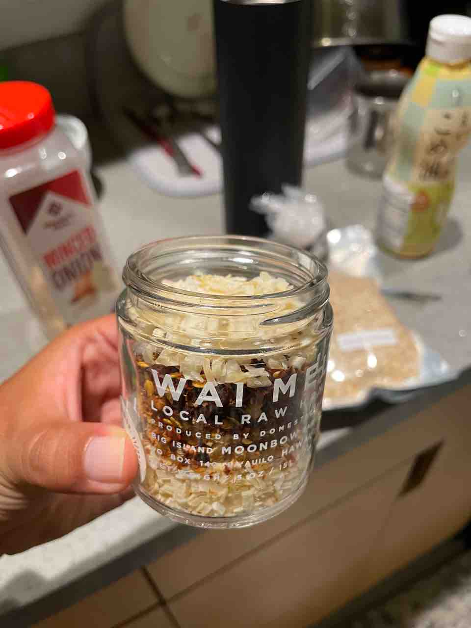 オニオン、ガーリック、チリ、オレンジピール、ごま、塩です!楽しみ!