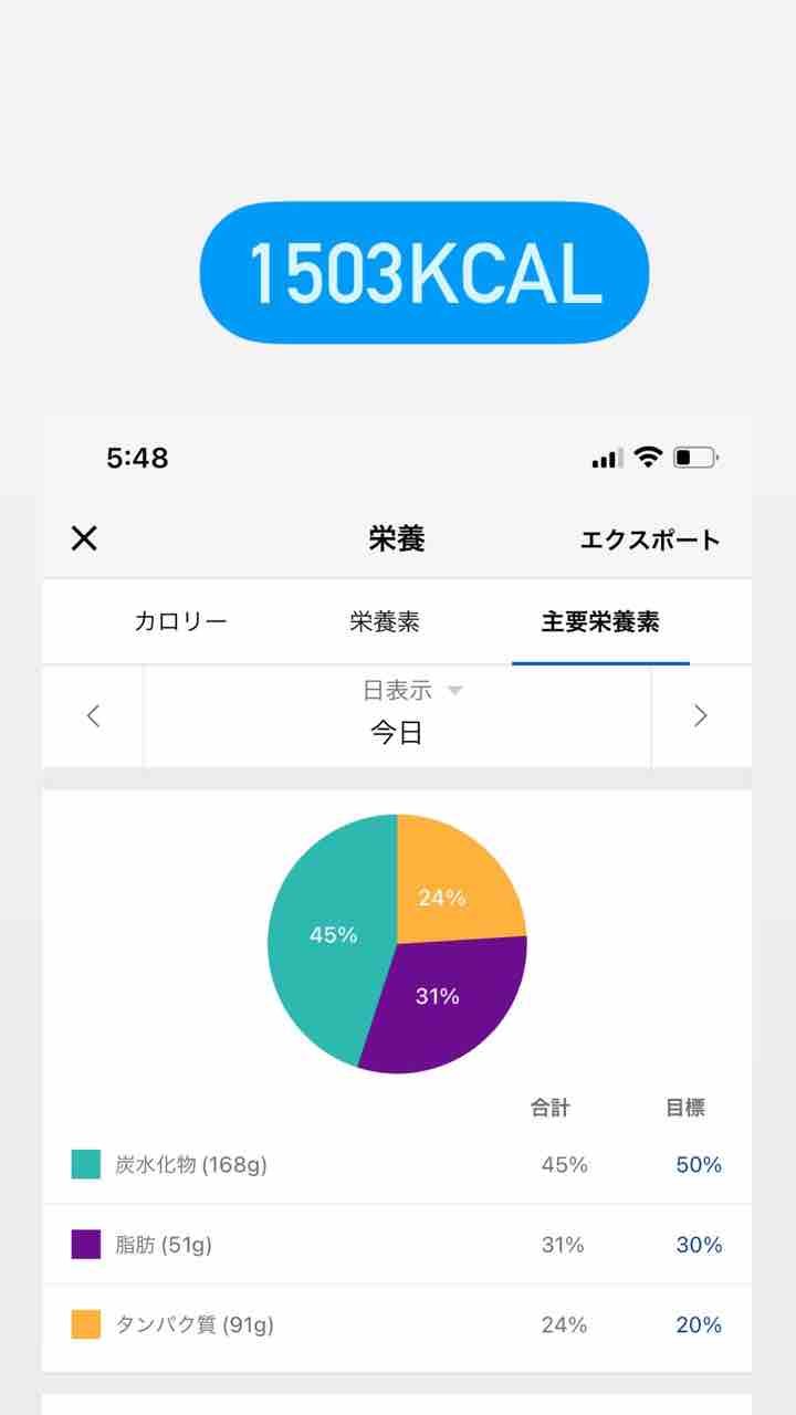 カロリーは1500キロカロリーくらい。