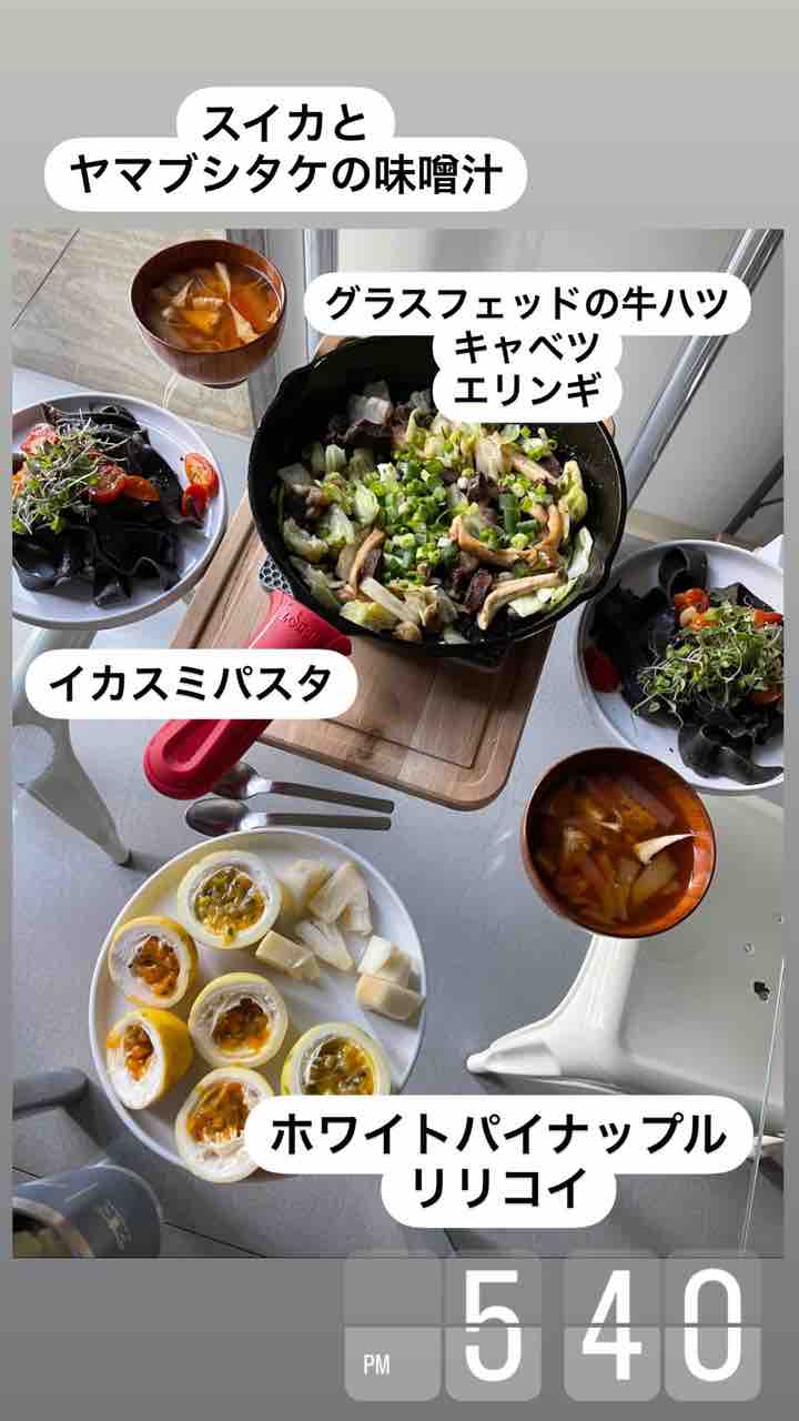 あとは牛ハツの野菜炒めと、味噌汁に、フルーツ。