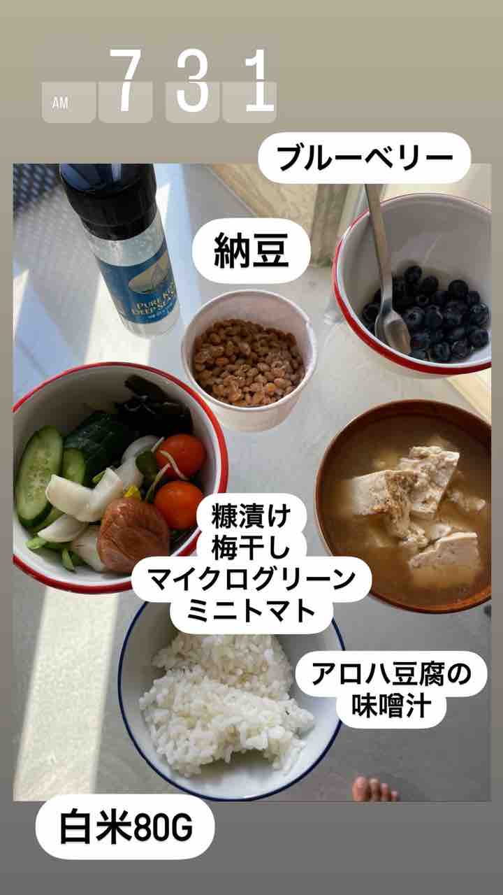 糠漬け、納豆、味噌汁、白米、梅干し。最高!