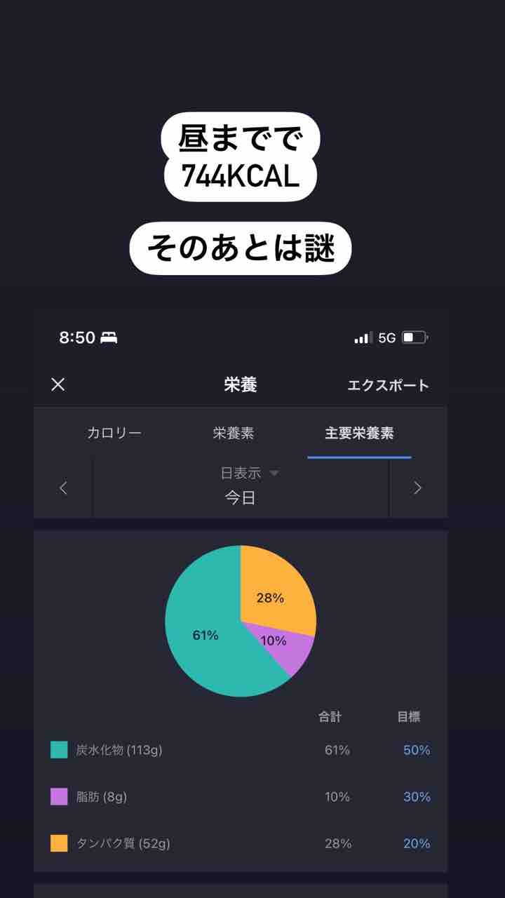 昼までで744キロカロリーで、そのあとは謎です!