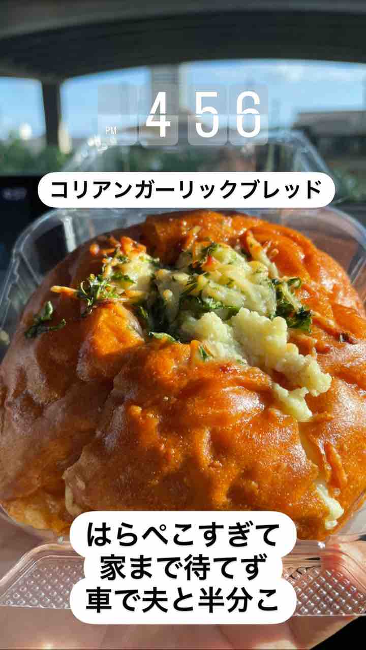 家で食べようと思ってたパンを車でモグモグ。