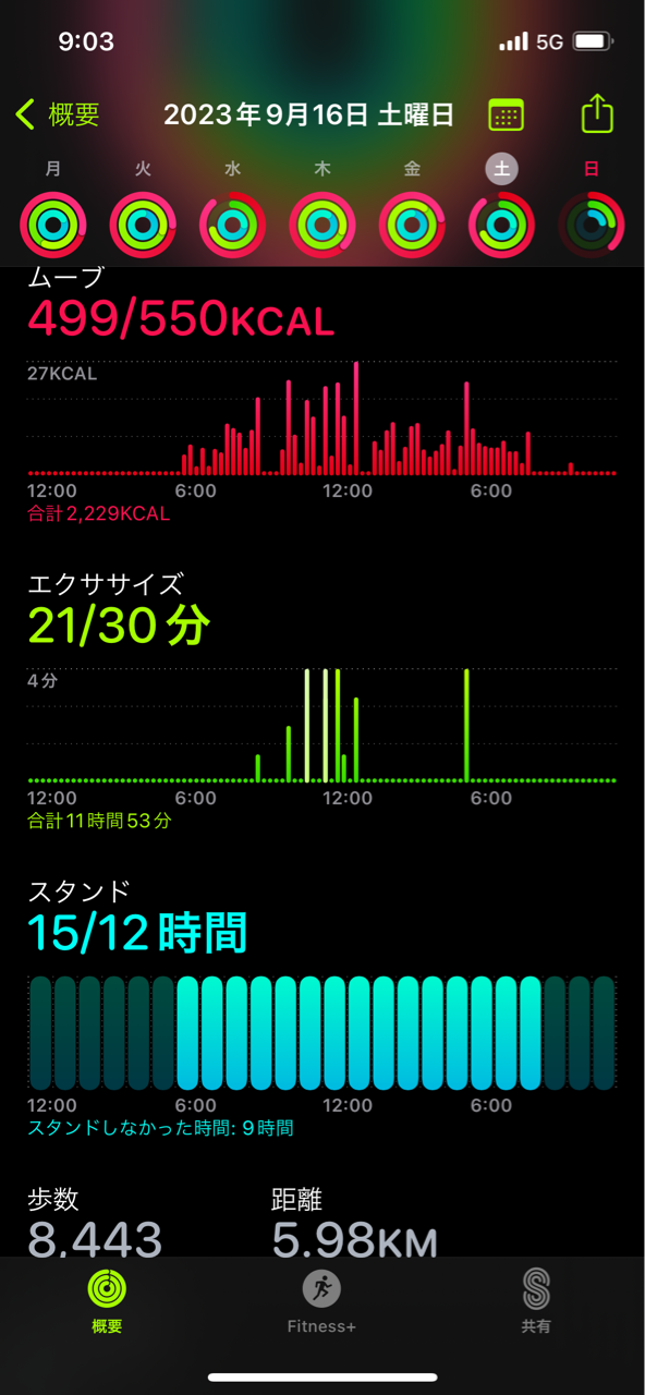 車ばっかり乗ってた割に歩数は8443歩!