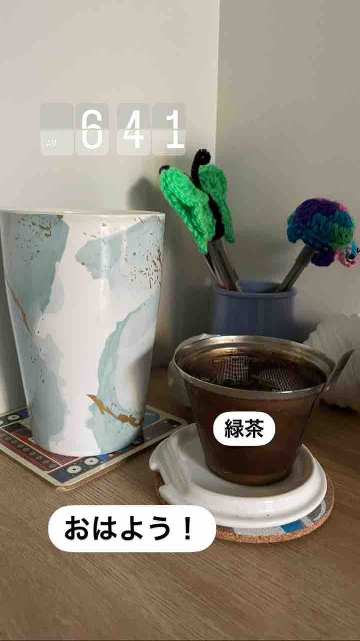 朝の緑茶を飲んでパソコンで一仕事してからの朝ごはん。