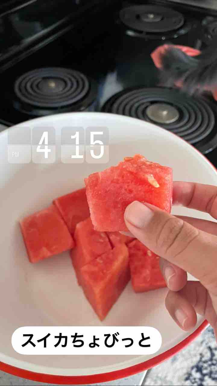 白米(酢飯)120gと、前日のカルビ野菜炒めの余りに野菜追加したやつ、味噌汁と野菜。ドラゴンフルーツ。