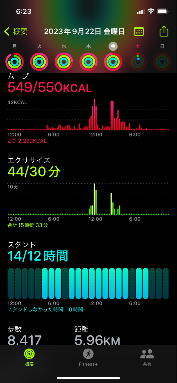 歩数は、なるべく歩かないようにしてて(足が痛いので)移動はとにかくBikiに乗ってるのに8417歩も歩いてしまった。
