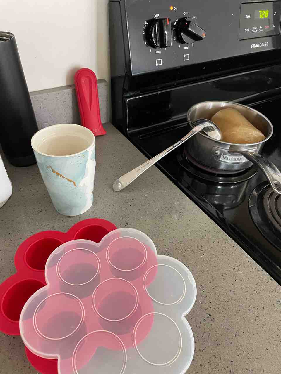 朝の味噌汁用にビーフコラーゲンスープ(ファームリンクで買いました)を溶かして小分けに。