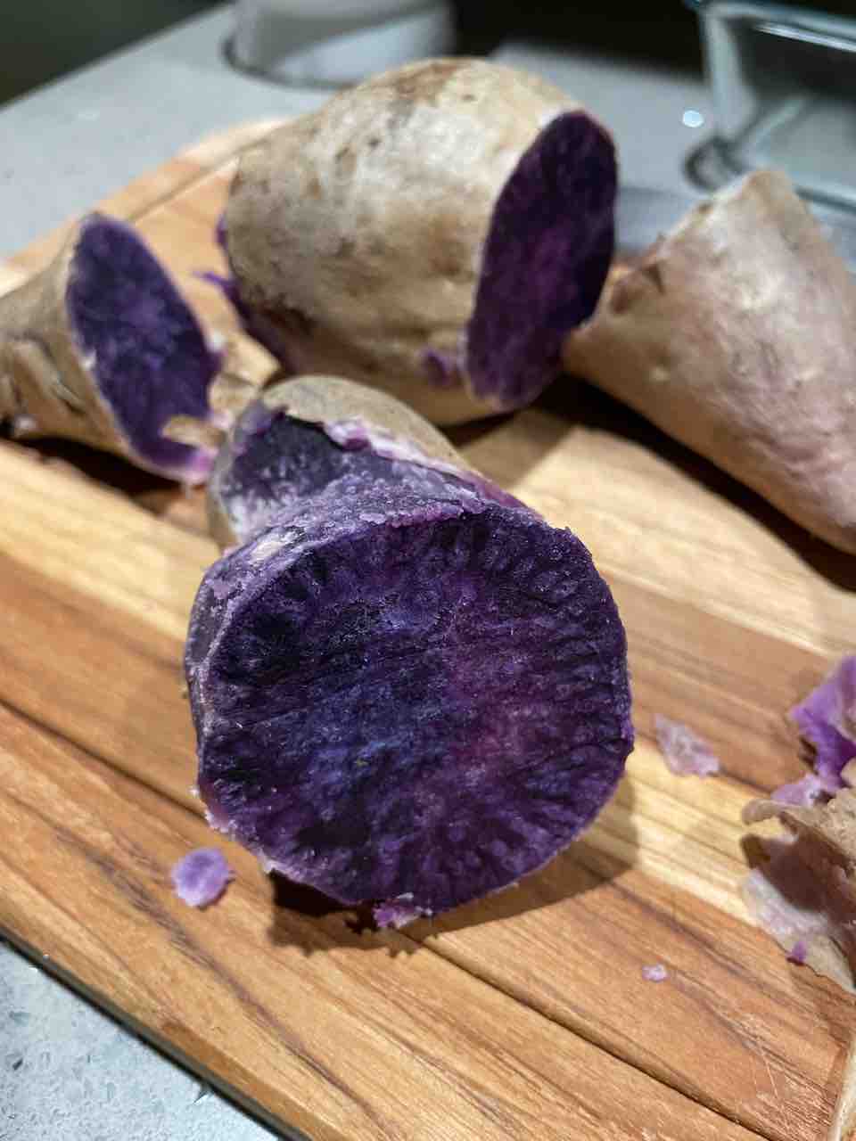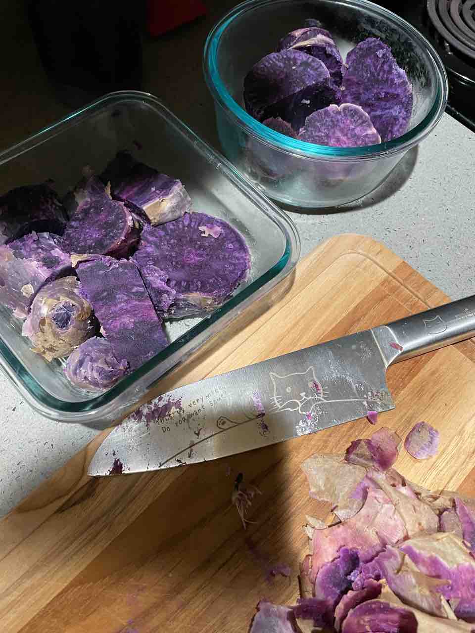 紫芋は好きすぎるからあえて生のは買わないようにしてて冷凍のを買ってたんだけど(食べすぎるので)やはり自分で下準備すると愛着が湧くなあ…!