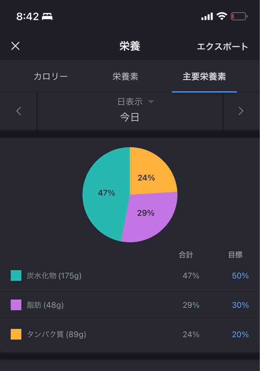 たんぱく質(P)80-100g,脂質(F)40g以上,炭水化物(C)残りの分