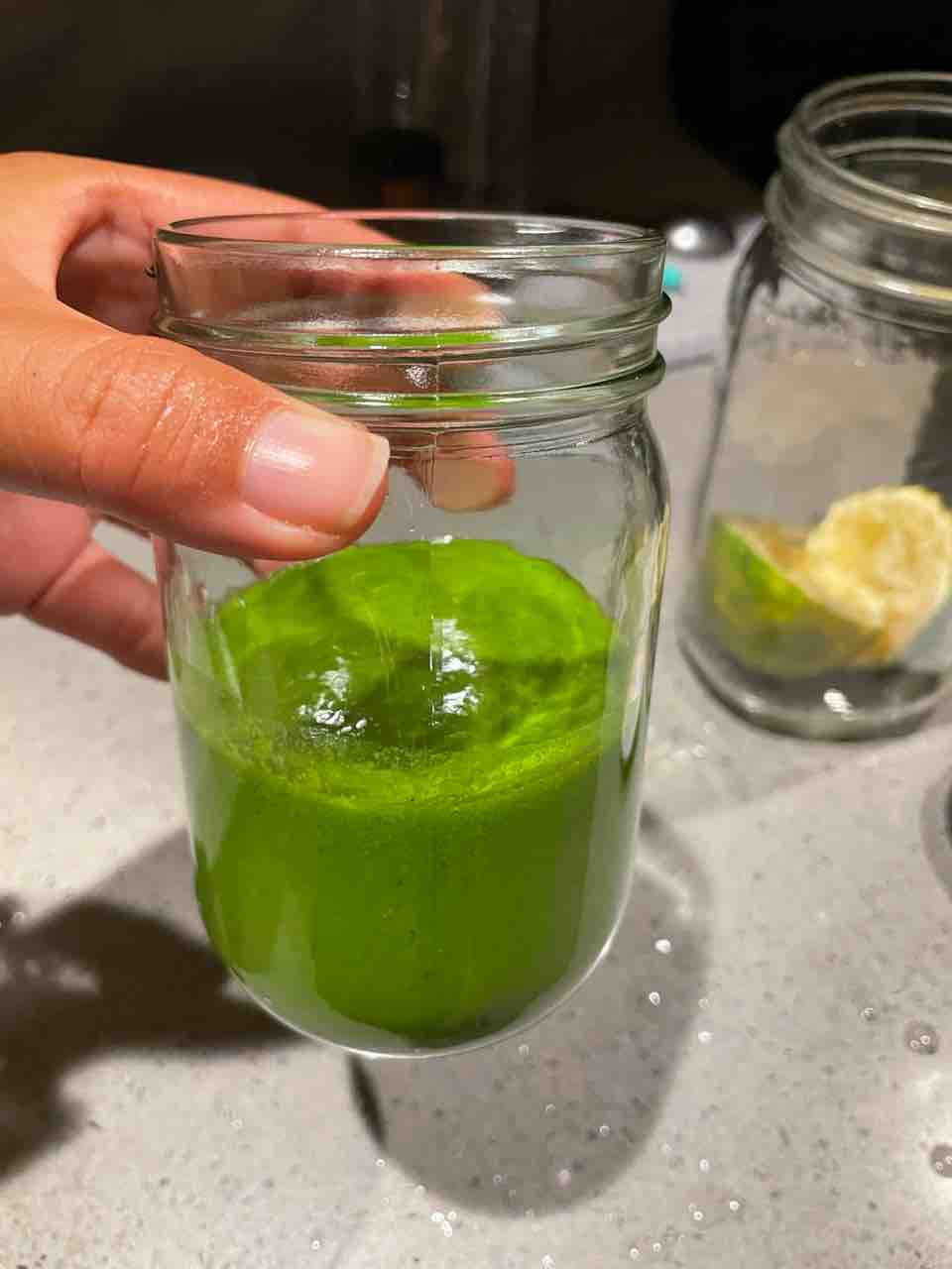 この前ガーデンで摘んできたバジルをソースにしておいたのだ。