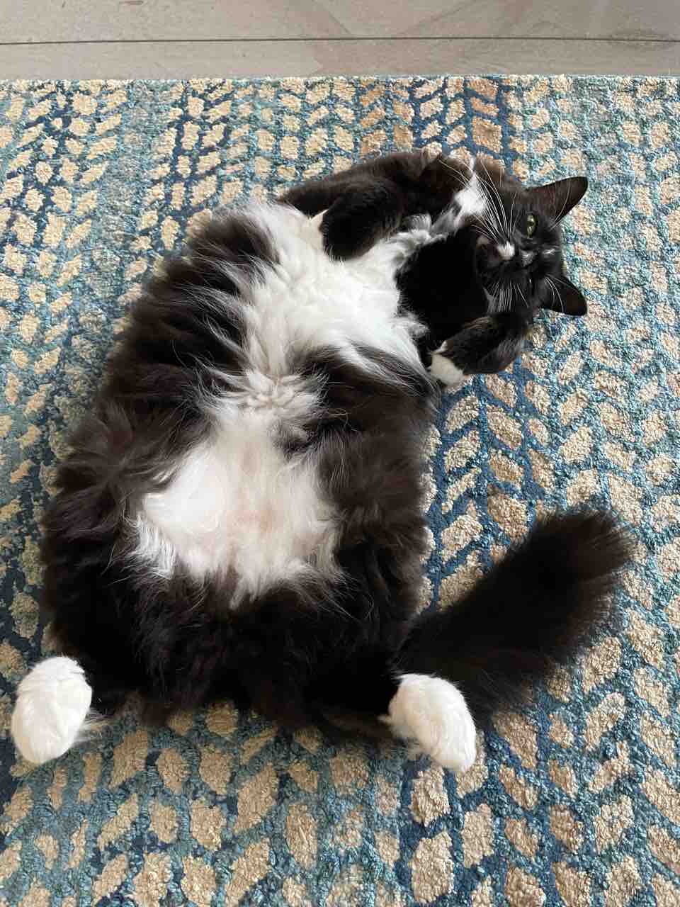 食後は、ポチ様のお腹を吸って英気を養う。あとチョコを小さな1かけら。