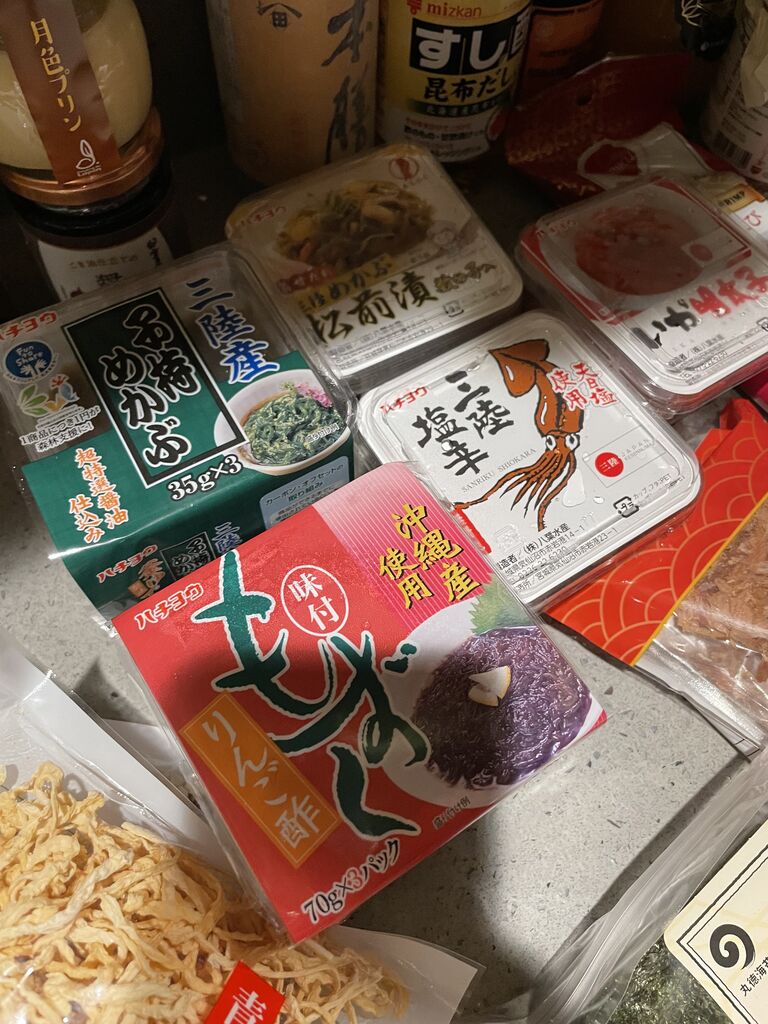 この辺りの、塩辛とか松前漬けとかすごい買った。