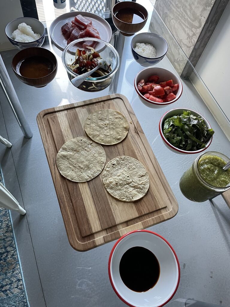 お刺身とポケにして、後はコーントルティーヤを買ったので、お刺身フィッシュタコも!