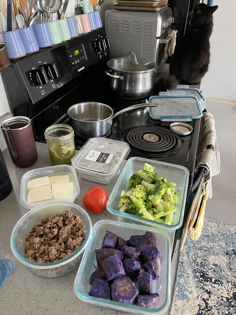 まずは猫様達のランチを用意してから、人間のご飯タイム!