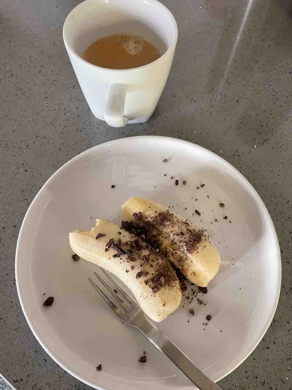 昨日の朝ごはんその1はアップルバナナとカカオニブ。コーヒー。