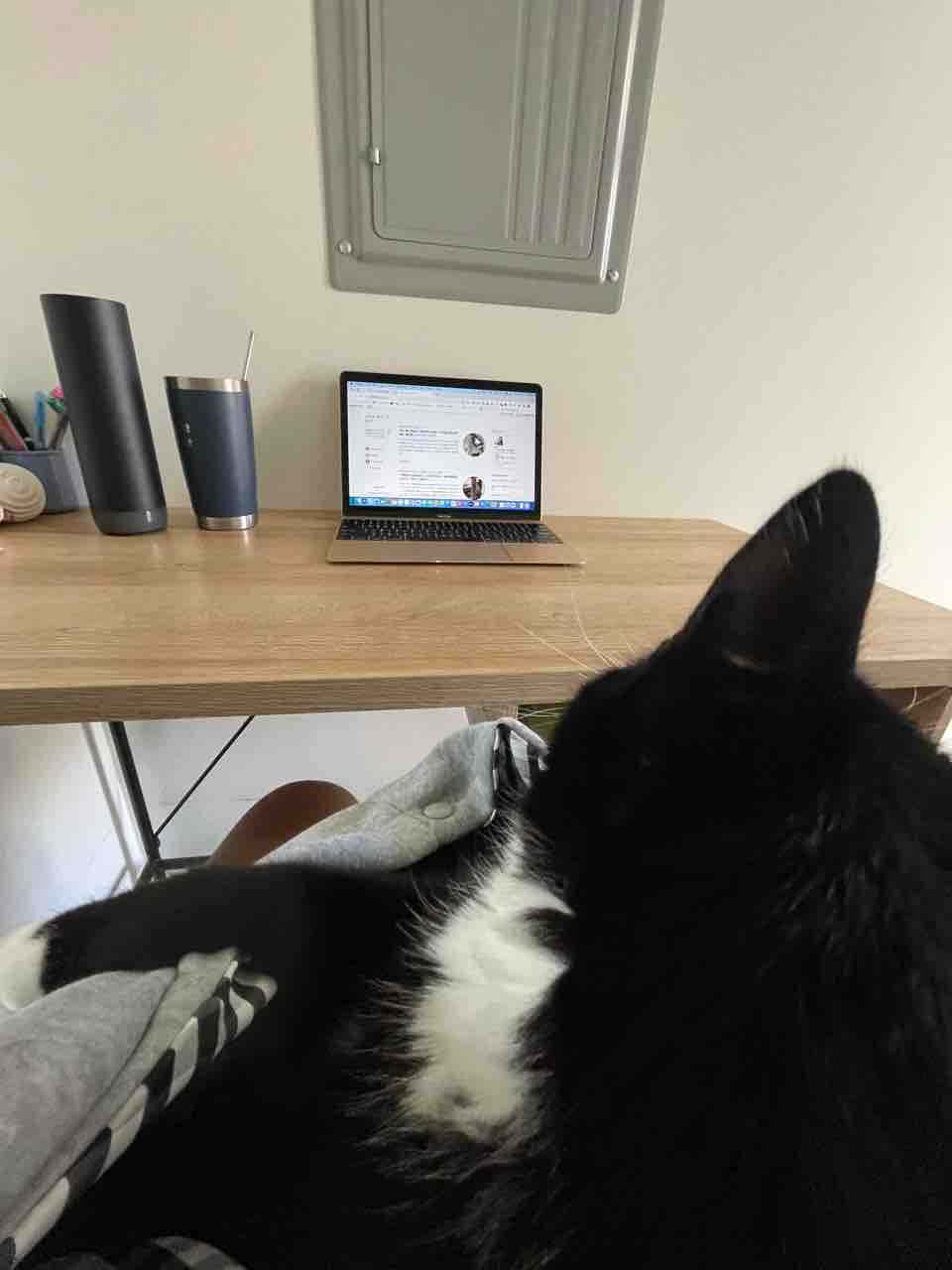 タマちゃんを抱っこしながらブログ書き。
