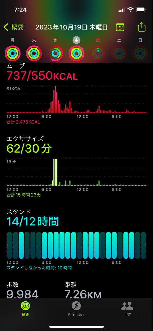 ・Apple Watchのリングを3つクローズ!(570kcal,運動30分,スタンド12時間)