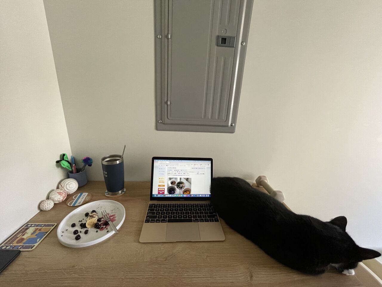 猫を撫で、バナナ食べて、パソコンが全然使えない😂