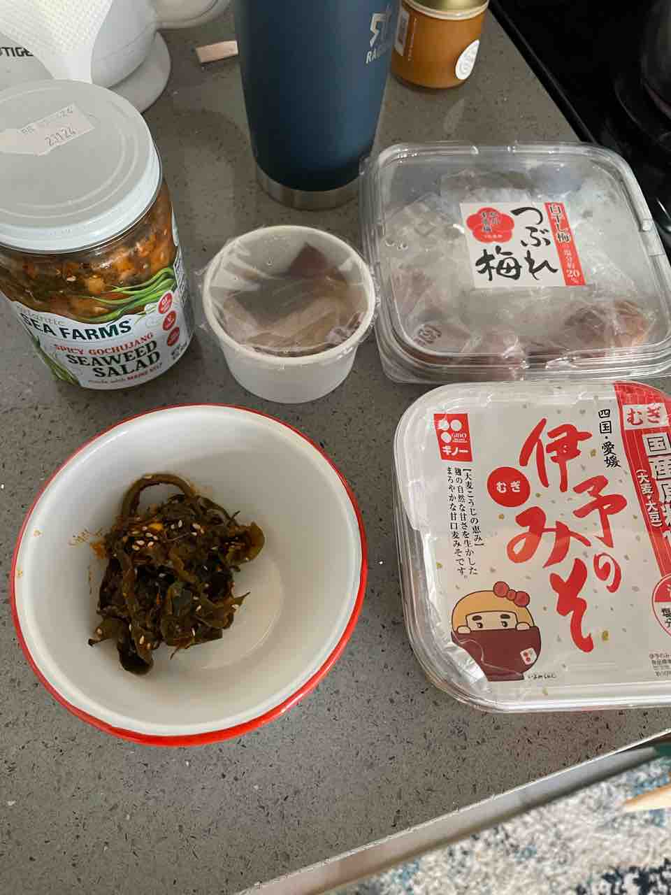 冷蔵庫にあったのは納豆、梅干し、海藻キムチ、味噌。