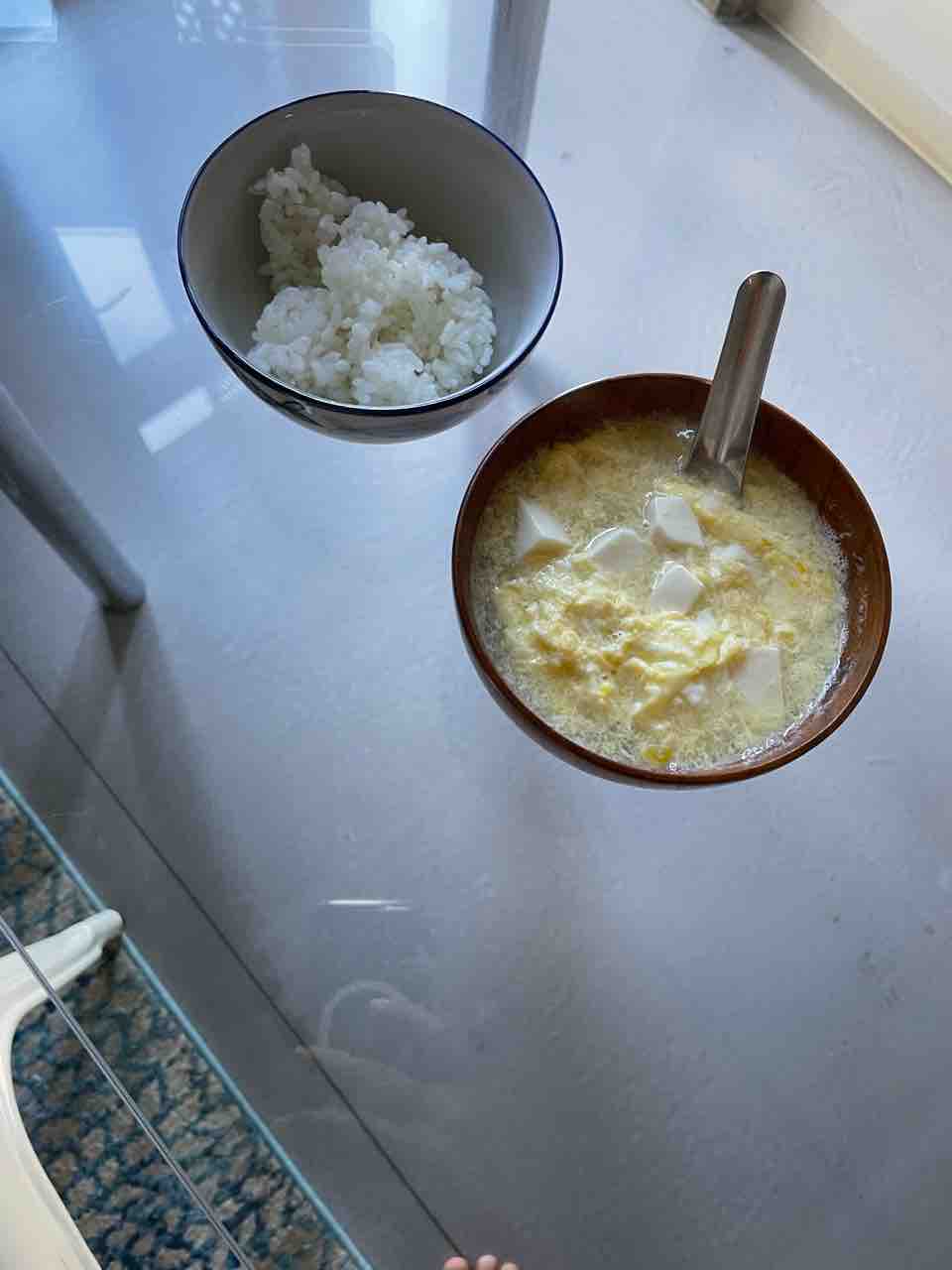 卵と豆腐を入れて、白米80gと。