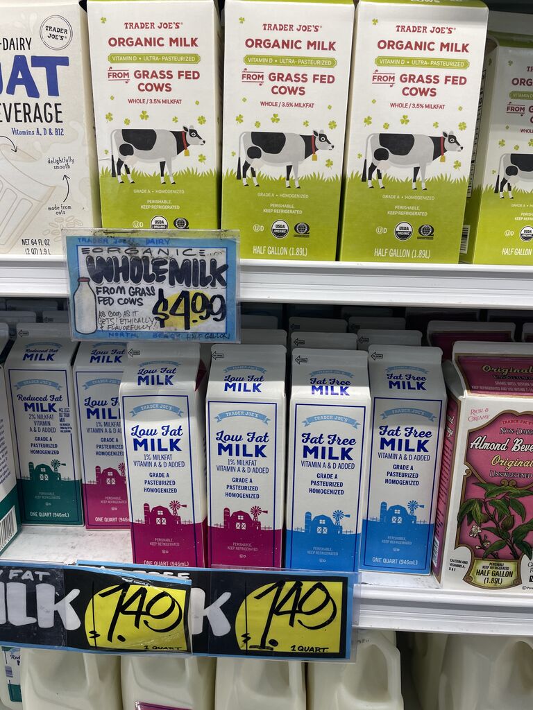 グラスフェッドミルクも4.99ドル!