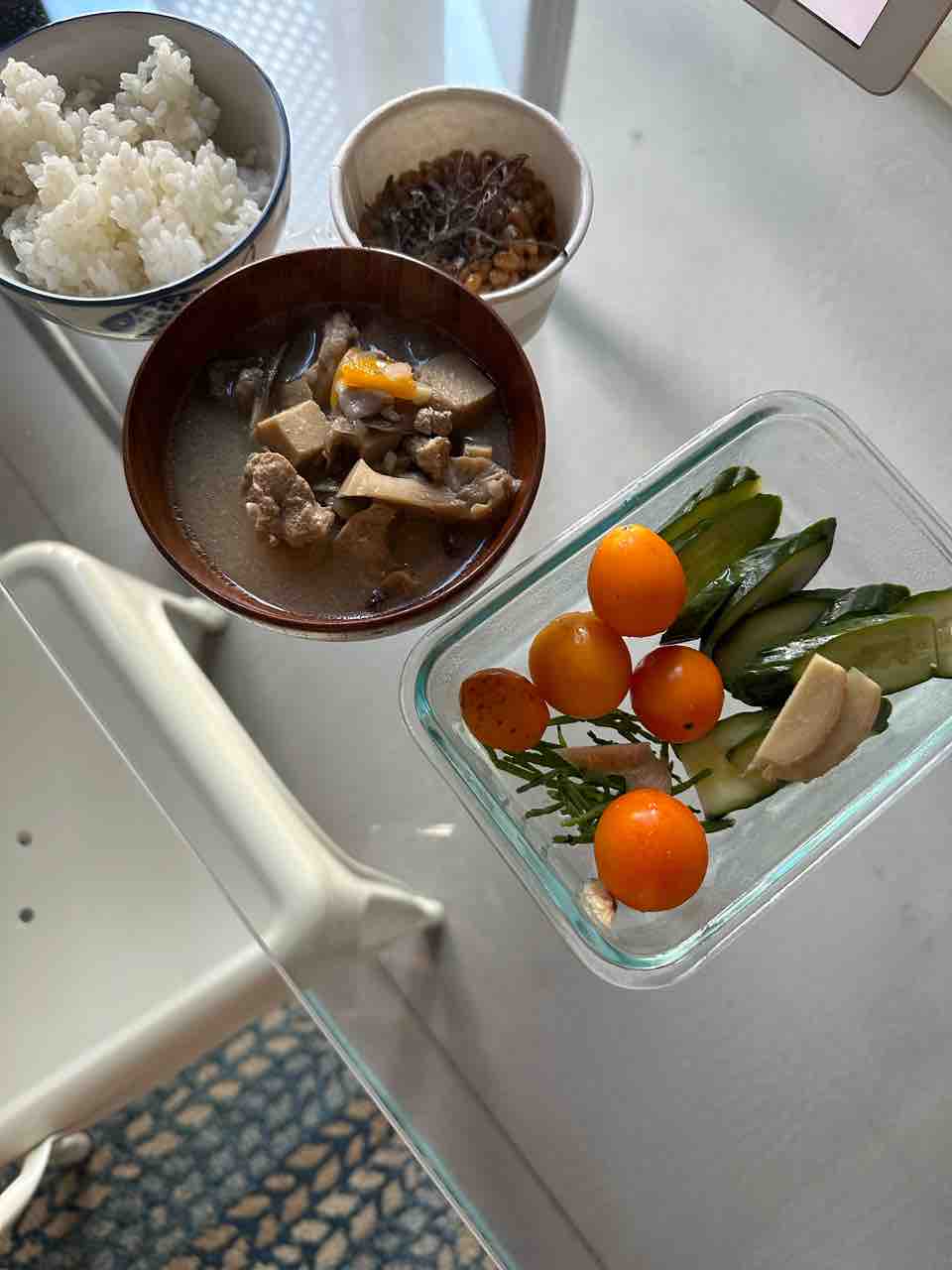 白米、納豆、豚汁、糠漬けなど!
