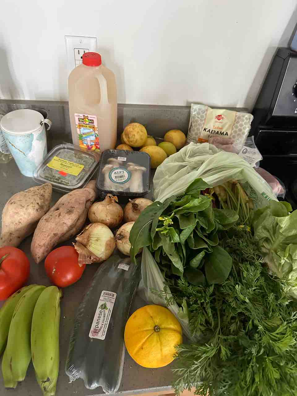30ドルの季節の野菜ボックスに、色々キノコやブロッコリースプラウトなど追加してオーダー。