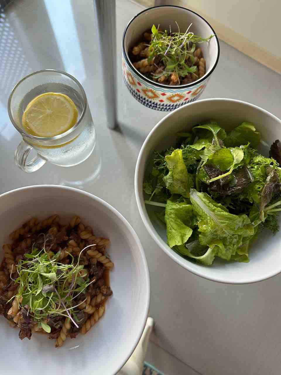 夜はビーツの葉っぱや、リーキの青いところとかを入れたグラスフェッド牛のミートソース。