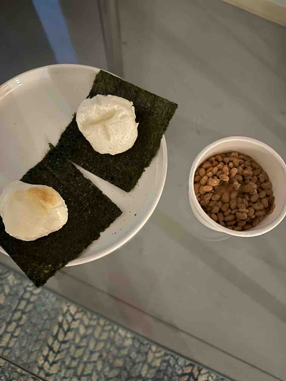 朝早く起きてお餅と納豆+オリーブオイルを食べて〜