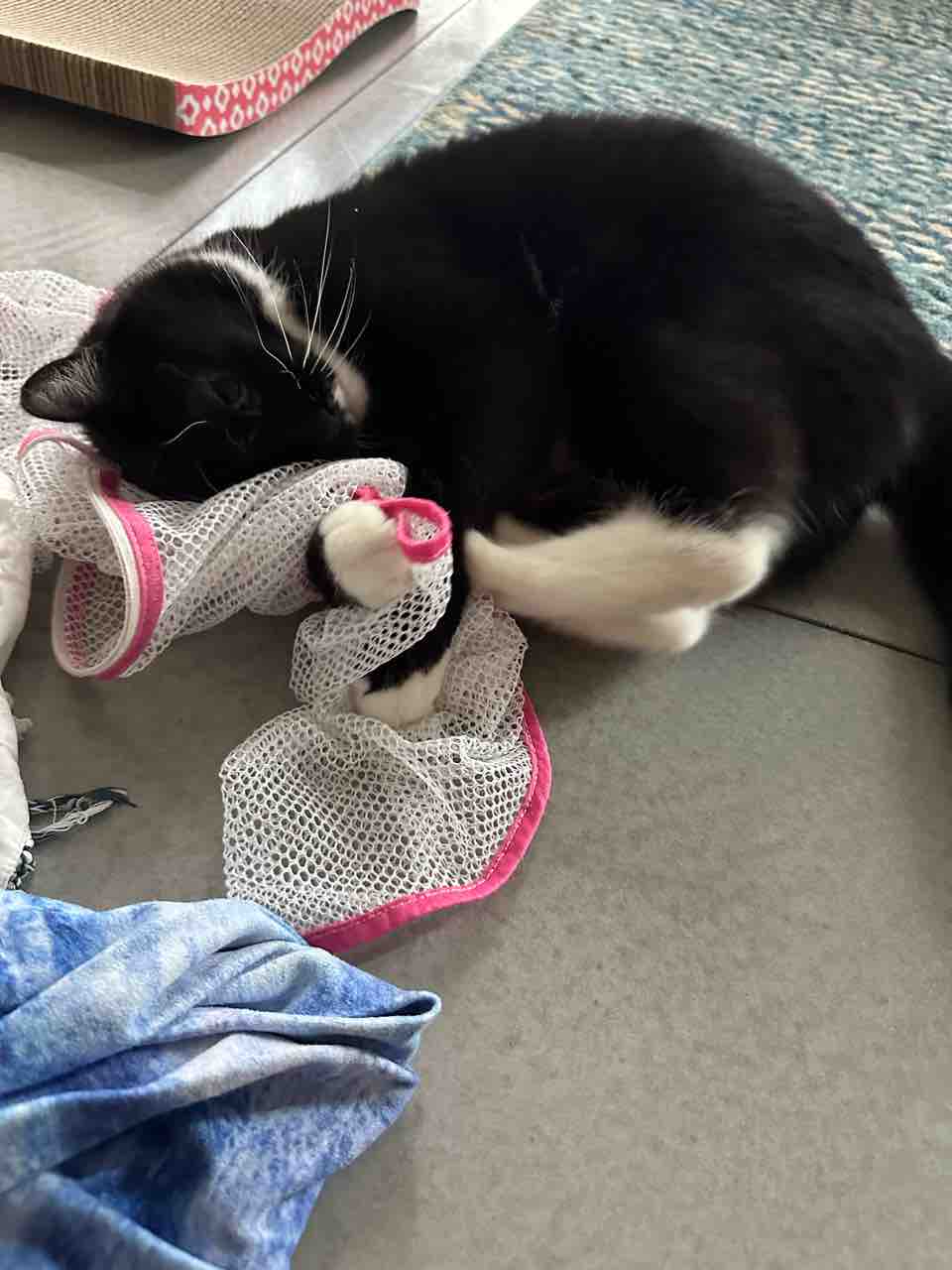 洗濯ネット、いつもキックしたがるお方。かわいい🐈