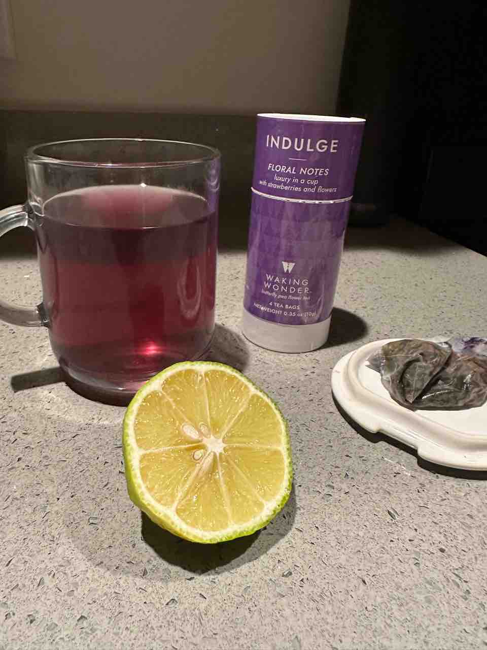 夜のお茶はバタフライピー。