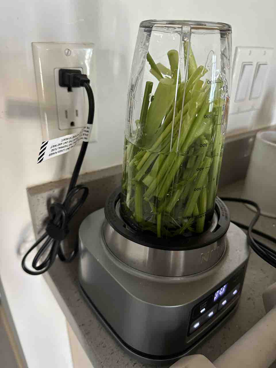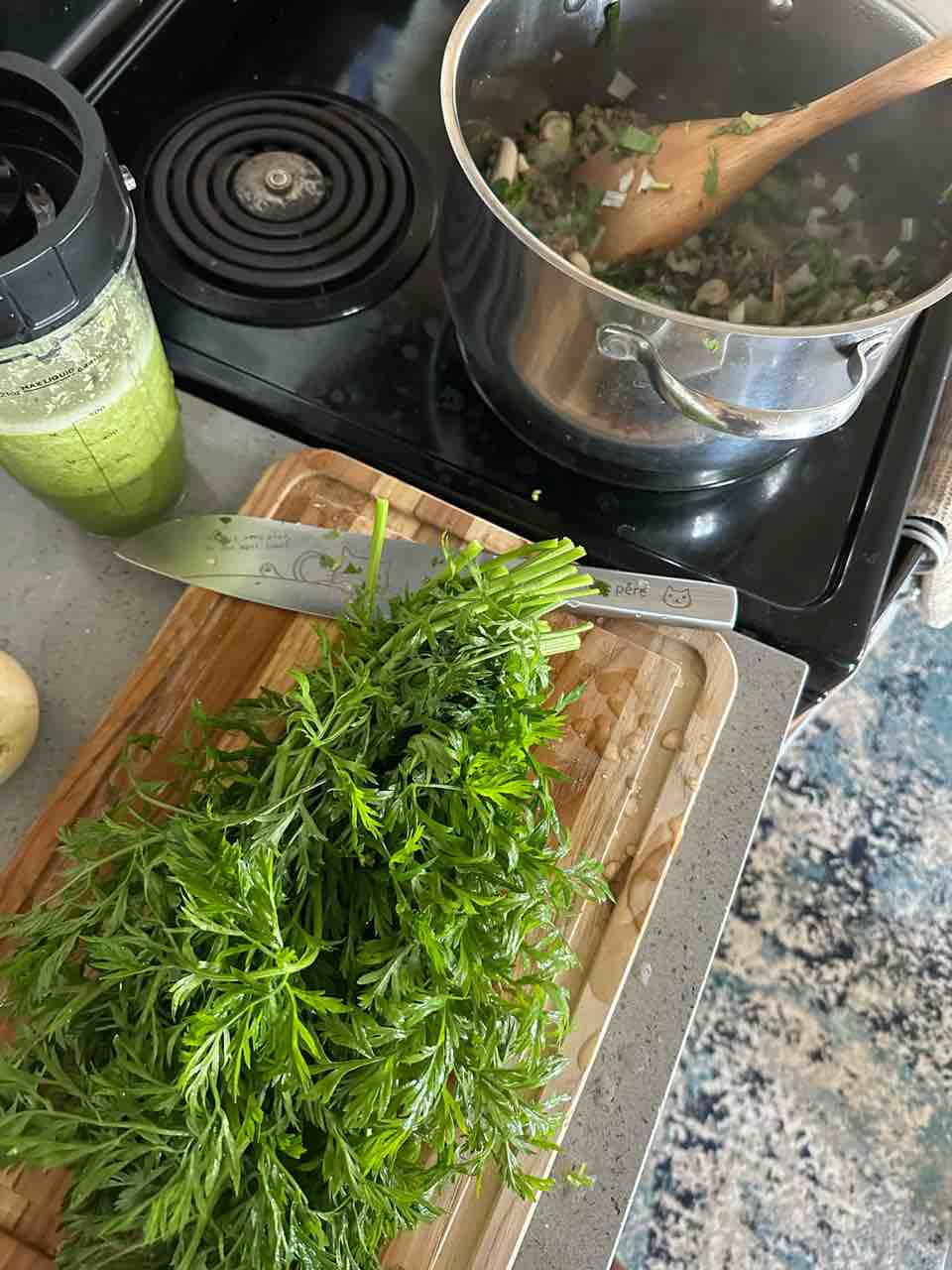 人参の茎は硬いのでミキサーにかけて