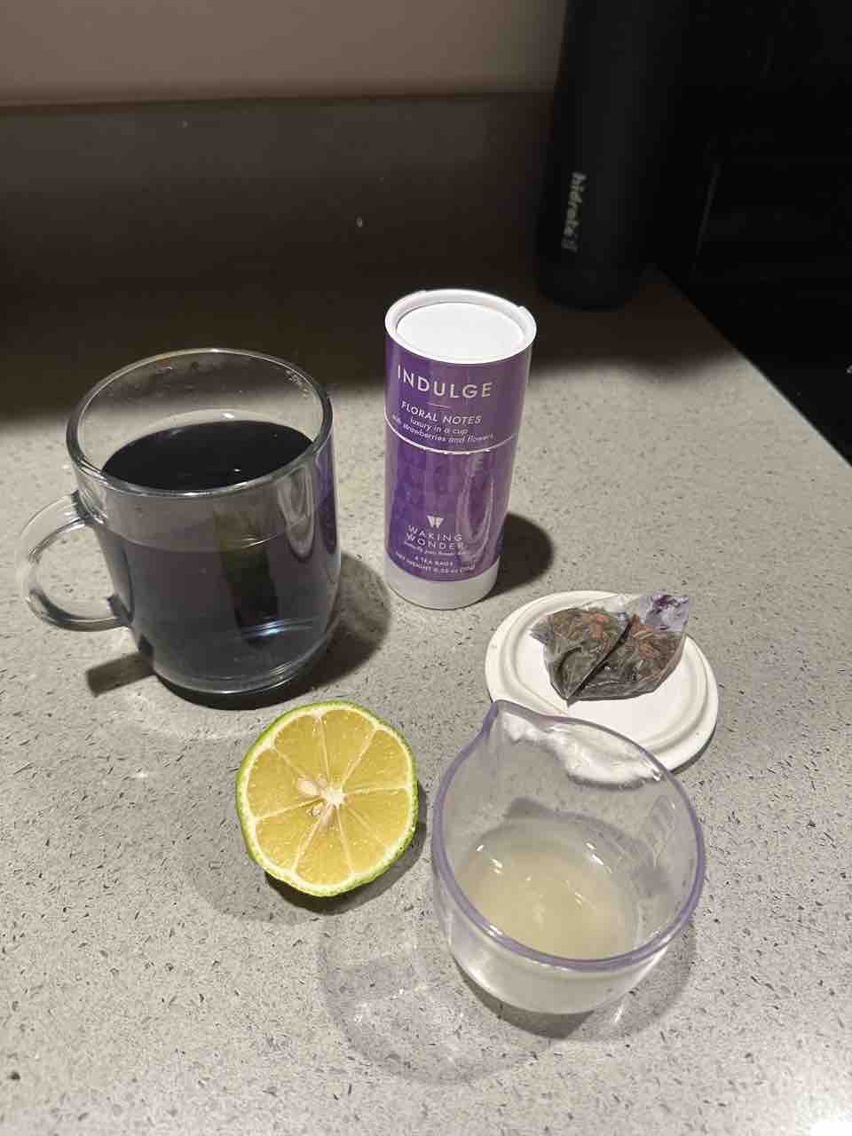 レモンを入れると色が変わる〜!