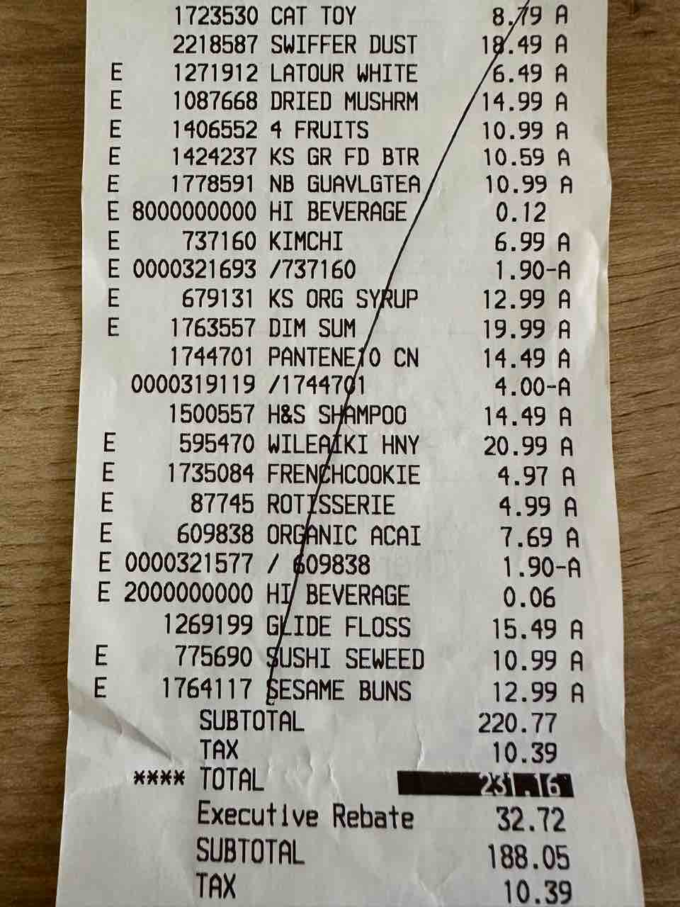 230ドル分です(個別の値段は最後にレシート貼っておきます)