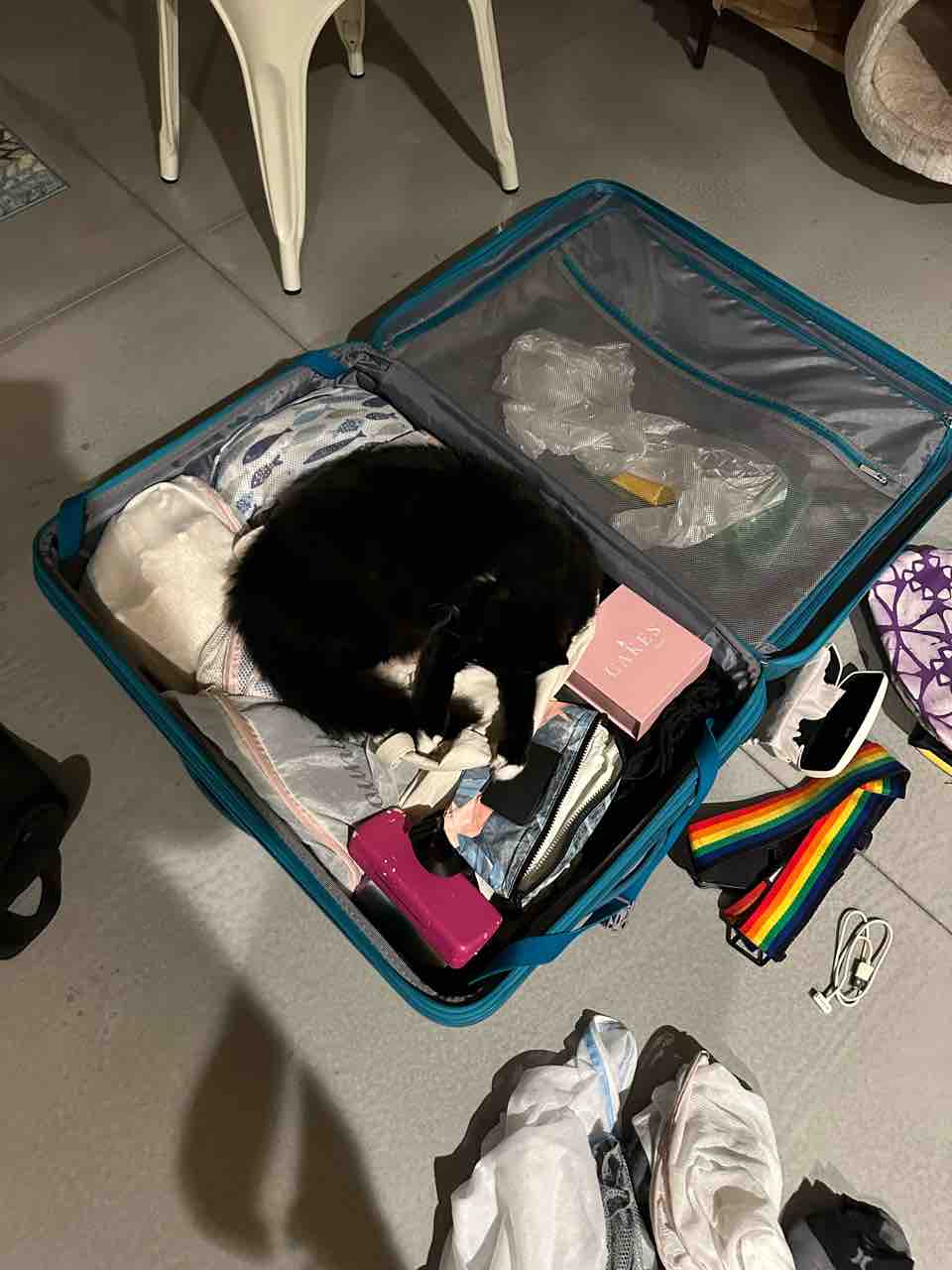 スーツケース出すとネコたちの溜まり場になるのかわいい。